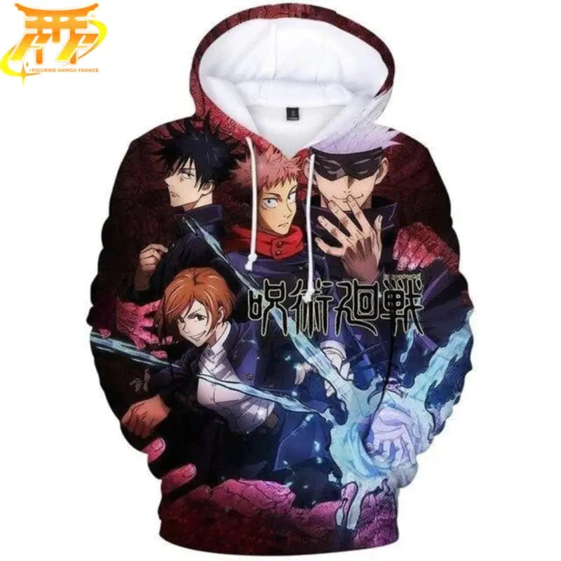 Pullover mit dem Bild von Gojo und seinen Erstklässlern Megumi, Nobara und Yuji, der Hauptfigur des Animes Jujutsu Kaisen™.