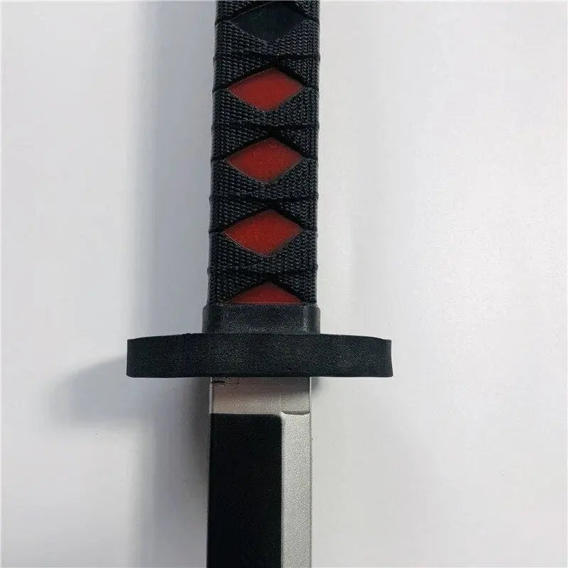 Das Katana wird mit einer Scheide aus schwarzem und rotem Kunstleder geliefert. Der Griff ist von einer geflochtenen Schnürung aus roter Baumwolle umgeben. Die Klinge ist so gearbeitet, dass sie über ihre gesamte Länge schwarz eingefärbt ist.